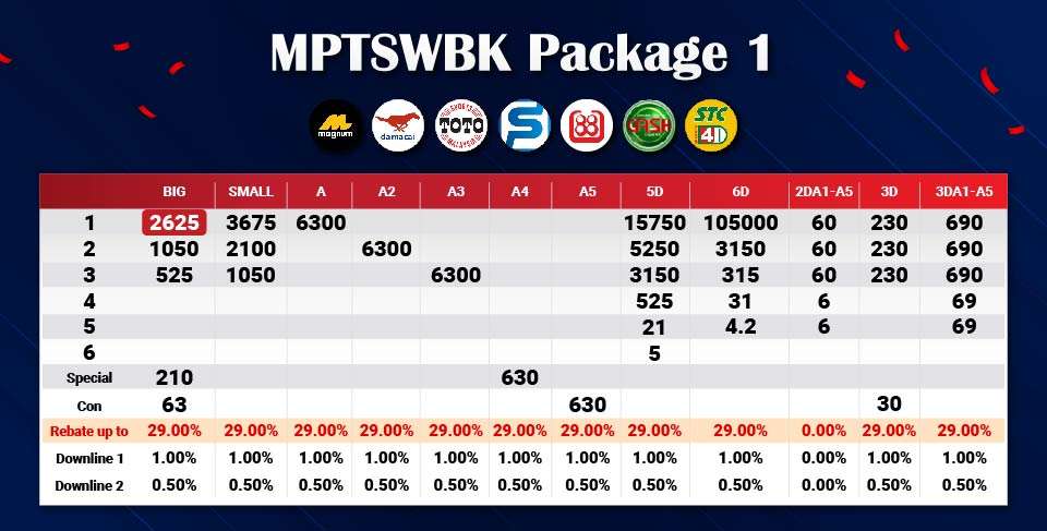 Lotto 4D Package 1 Prices Structure