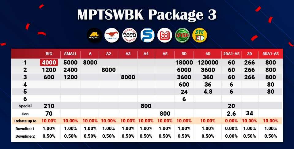 Lotto 4D Package 3 Prices Structure